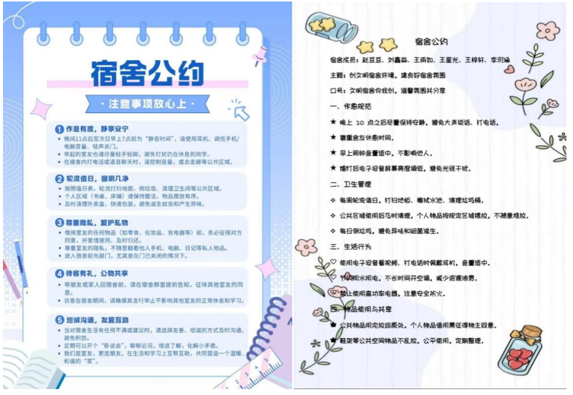 此次宿舍公约活动中,每个宿舍的参与热情十分高涨。大家提交的作品创意十足,充分展现了同学们的巧思与个性,最终评选出20个获奖作品。