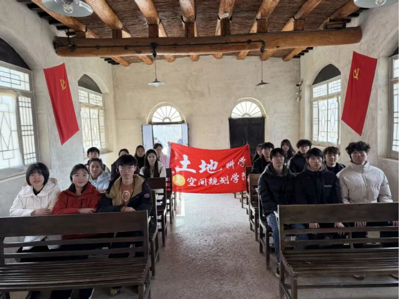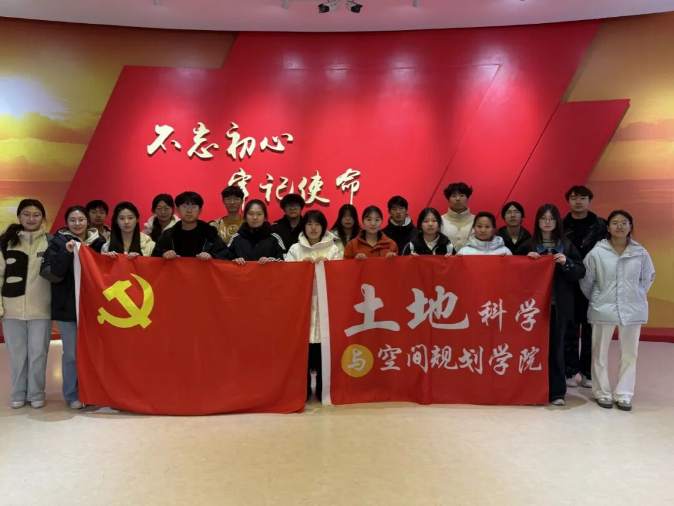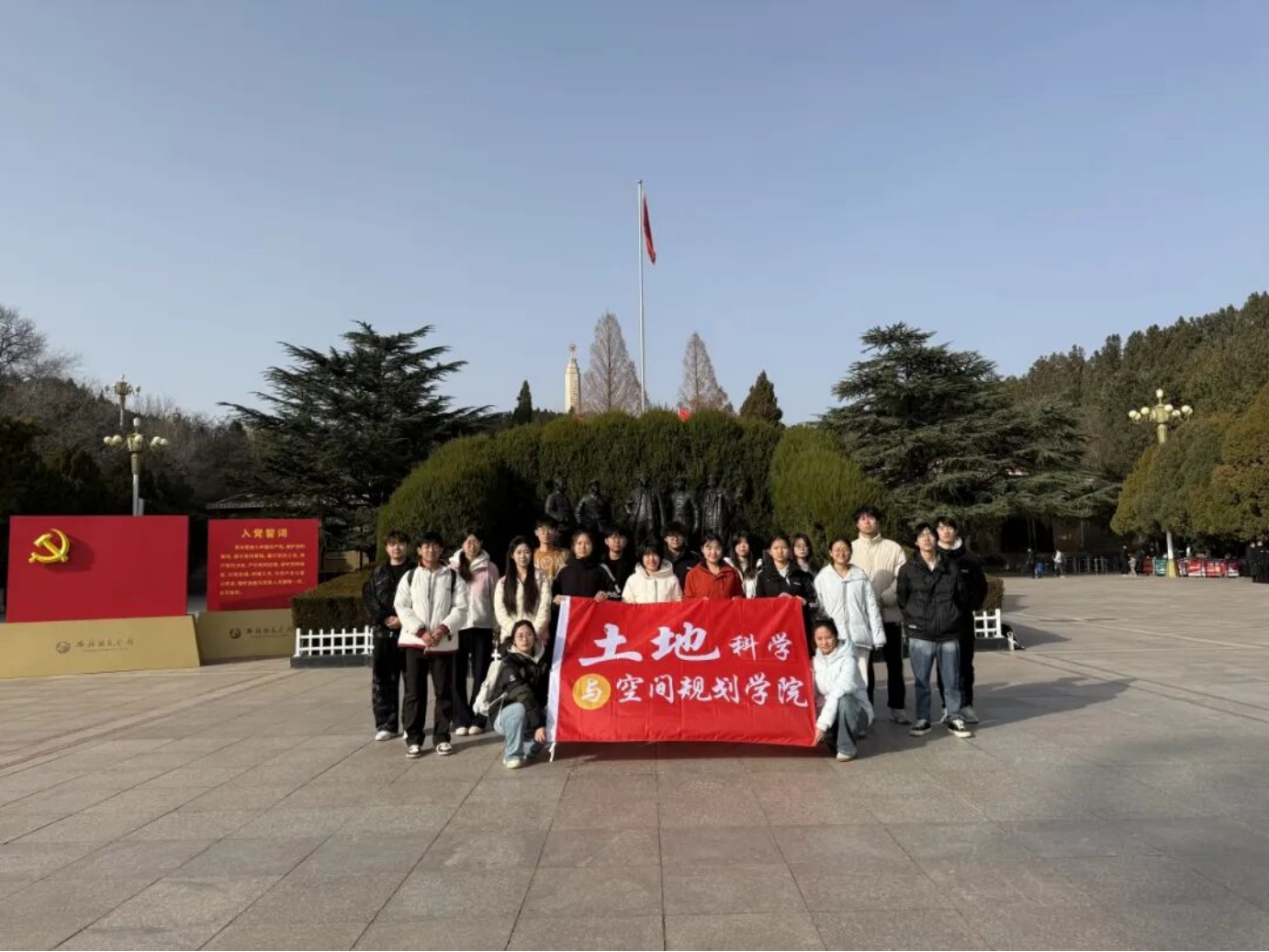 参观尾声,全体老师与同学在党旗前合影留念,定格下传承红色基因、践行初心使命的坚定决心。本次活动圆满收官,生动展现了青年党员践行西柏坡精神、主动担当作为的青春风采,更为大家注入了砥砺奋进、勇毅前行的精神力量。